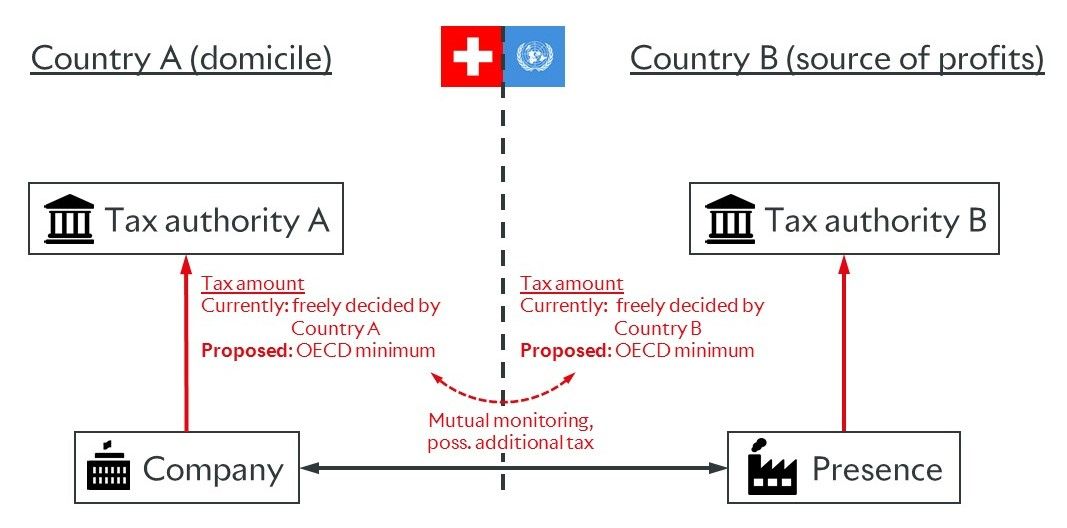 This also affects the financial centre. The banks in Switzerland support the introduction of the OECD minimum tax, even though it equates to a tax hike. Under the mechanism worked out by the international community, a failure on Switzerland’s part to adjust its tax system would have resulted in other states being able to impose additional taxes on companies in Switzerland. In other words, companies have to pay at least 15% tax, whatever happens. The extra tax revenues would thus have flowed to foreign states if Switzerland had not implemented the OECD minimum.